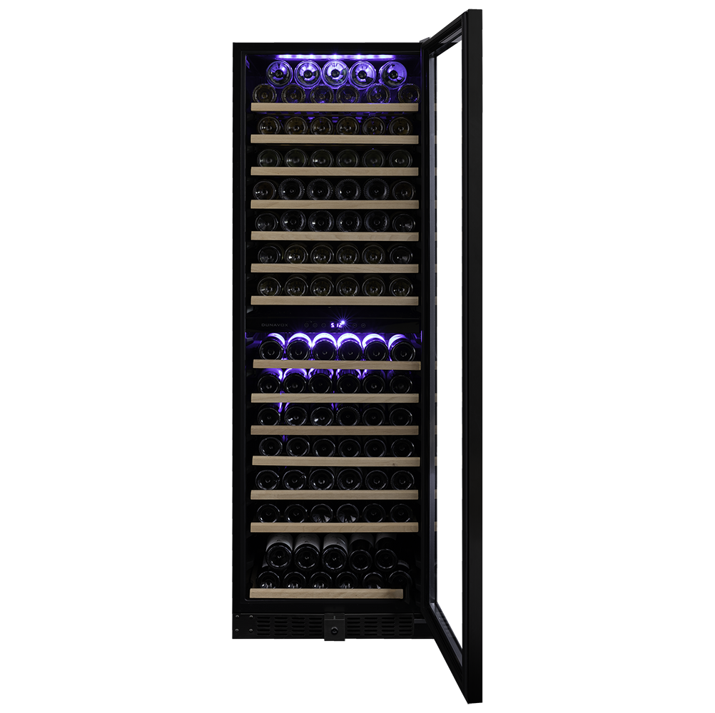 Dwustrefowy, wolnostojący model do przechowywania 166 butelek z serii Grande firmy Dunavox. Wyróżniający się eleganckim wyglądem – DUNAVOX Grande-166 jest idealny do nowoczesnych kuchni, barów i hoteli.