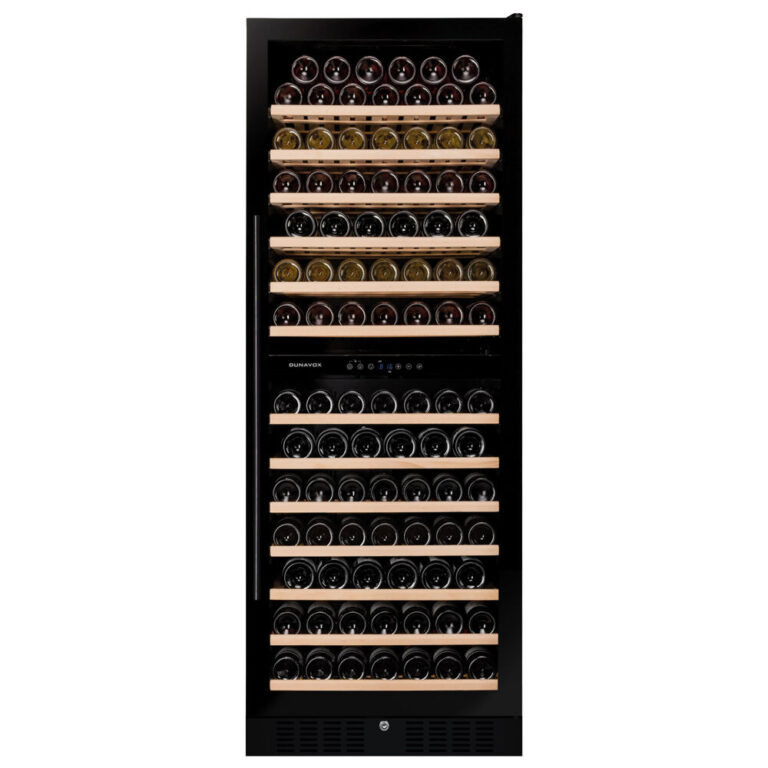 Model z dwiema strefami na 50 butelek. Chłodziarka ma zagłębioną klamkę drzwi, a butelki są podparte na solidnych drewnianych półkach. Ta chłodziarka umożliwia przechowywanie otwartych butelek.